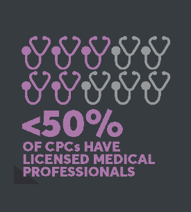 - Most states do not require these centers to disclose the fact their facility, staff and/or volunteers are not licensed to their clients
