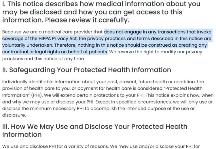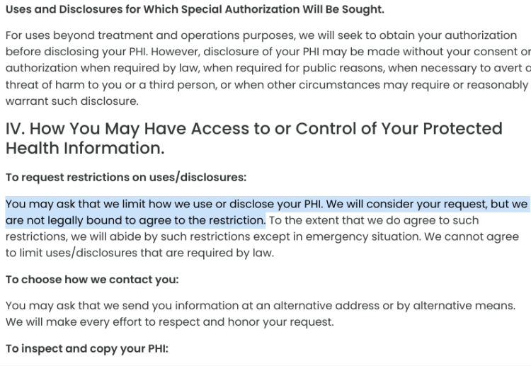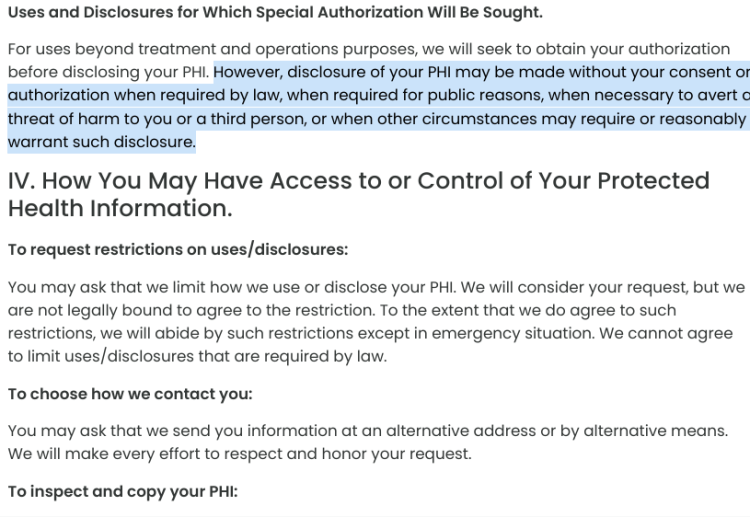 Here is a ‘Notice of Privacy Practices’ from an anti-abortion center in Raleigh, NC, stating that they may or may not honor your requests about your own medical information and privacy.